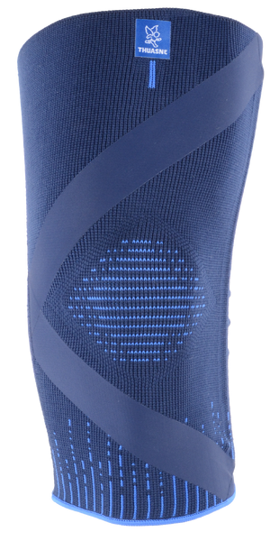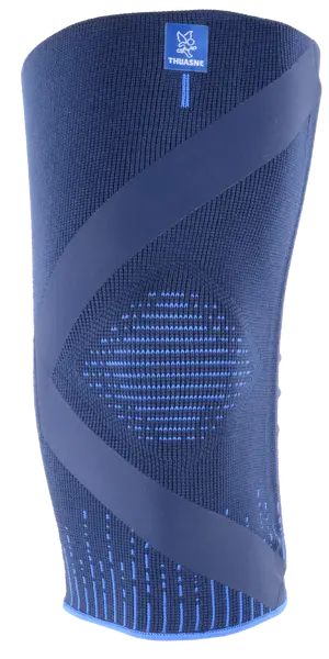 De Thuasne® Kniebrace bij artrose combineert compressie met een ontlastende werking. Het X‑vormige *TensionStrap*-systeem oefent gerichte krachten uit aan de zijkanten van het been, waardoor het gewicht wordt herverdeeld en de druk op het pijnlijke deel van het gewricht wordt verminderd. Dit verlicht pijn en maakt bewegen gemakkelijker(1).